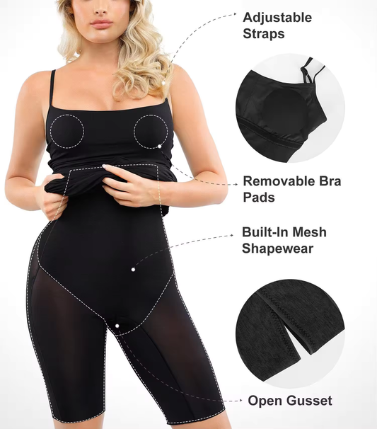 Built In Bra and Shapewear Black One Piece Short Dress (Black)